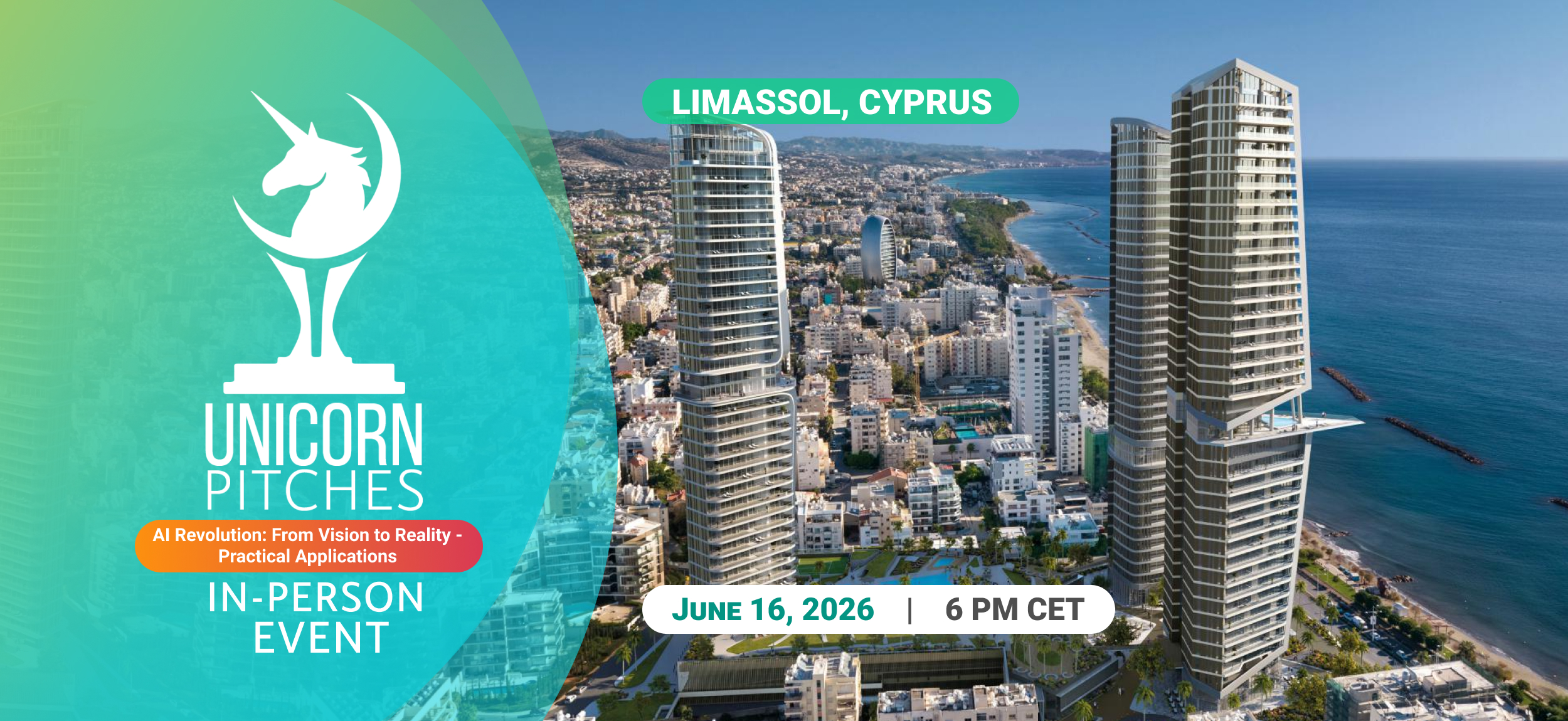 Join us for the highly anticipated Unicorn Pitches Limassol on June 16th, 2026 at 6:00 PM!